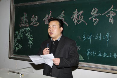 (本网讯)10月11日下午, 万象城平台,万象城(中国)一站式服务平台材料与化工学院特邀国家杰出青年基金获得者、西北工业大学教授、我校92级金属材料专业刘峰校友为材化学院2012级新生做了一场“从西工学子成长为国家杰青的历程和感悟”的专题报告。报告会由材化学院副院长坚增运主持。