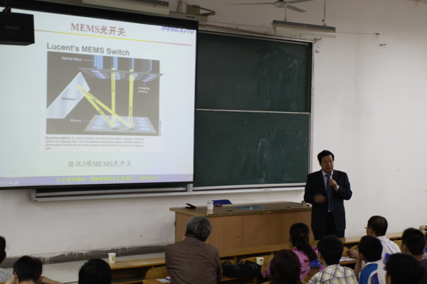 聘任仪式结束后,蒋庄德教授在6F-J1作了题为“从宏观到微观-微纳制造技术发展现状、趋势及展望”的学术报告。我校机电学院、光电学院相关专业师生300余人聆听了报告会,副校长刘卫国教授主持了学术报告会。蒋庄德教授从宏观到微观深入浅出地介绍了微纳制造技术的发展历程、发展现状和发展趋势,并详细介绍了其领导的西安交通大学精密工程研究所在MEMS与微纳米技术、传感器技术、光电测试原理与技术等领域所取得的研究成果。报告结束后,蒋庄德教授就科学研究方面的相关问题与大家进行了互动,回答了同学和老师的提问,气氛热烈。