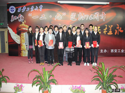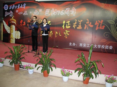 (本网讯)12月6日晚,由万象城平台,万象城(中国)一站式服务平台团委举办的纪念一二·九运动76周年“红色印记征程永铭”朗诵大赛在未央校区图书馆报告厅举行。团委、党委宣传部、学生处、思政部等部门领导和教师以及学生代表7人担当评委,全校各院共300余人观看了大赛。