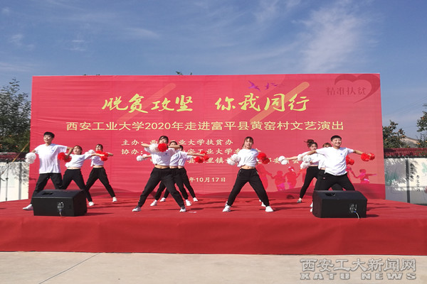 17日下午,校团委带领100余名西安工大艺术团学生来到黄窑村,为村民奉献了一场主题为“脱贫攻坚你我同行”文艺演出。大学生艺术团的同学们和黄窑村喜洋洋幼儿园的孩子们表演了舞蹈、诗朗诵、合唱等节目,精彩纷呈的演出得到村民的喜爱和称赞。
