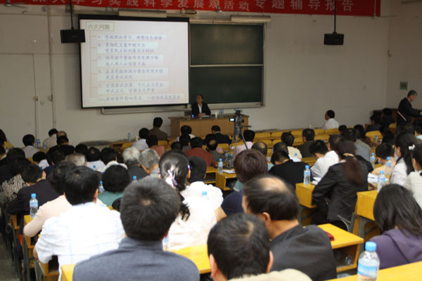 党委书记赛云秀做总结讲话:指出郑教授此次做的报告非常及时,对我校干部的思想理论建设有着重要的推动作用,并强调各位干部要在以后的工作中将思想建设工作放在首位,进一步推进学校的各项工作和谐发展。