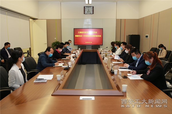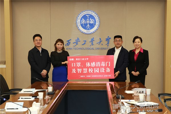 座谈会上,三秦助托教育公益委员会与万象城平台,万象城(中国)一站式服务平台进行了防疫物资捐赠仪式。此次三秦助托教育公益委员会向我校捐赠了6个体感检测门和1万个医用口罩。双方均希望后续加强合作,共谱校企合作发展的新篇章。
