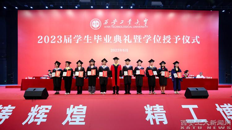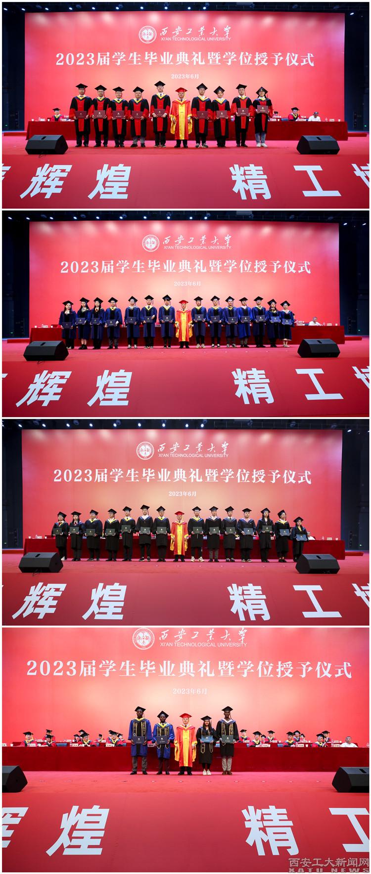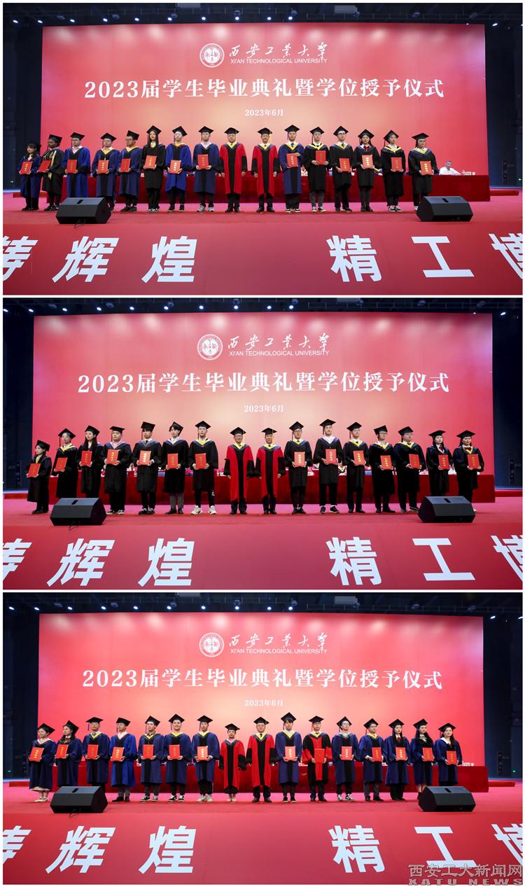 校党委副书记梁云鹤,校党委副书记、纪委书记王发合,副校长刘发林,副校长刘卜为优秀毕业生、优秀学生干部代表颁发荣誉证书并合影留念,副校长陈建、总会计师段小存为获得“优秀硕士学位论文”的学生代表颁发荣誉证书并合影留念。