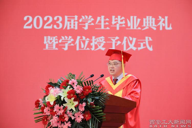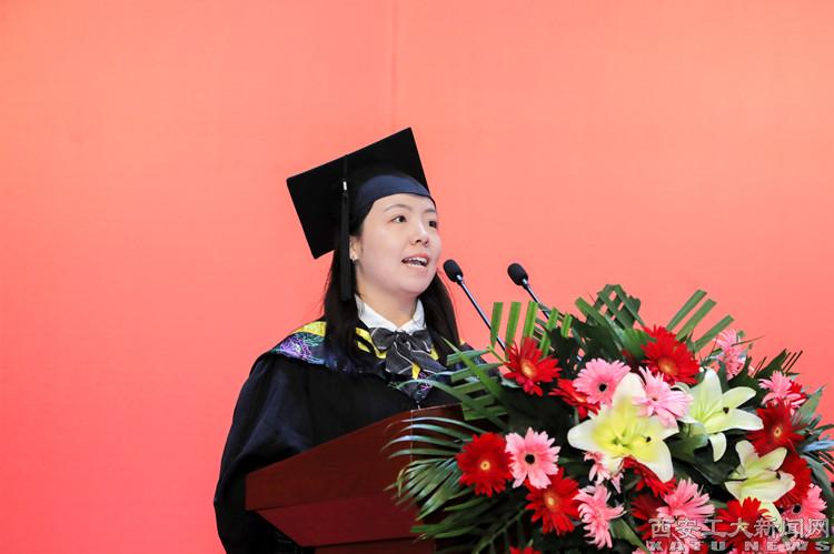 建筑工程学院王沛婷同学代表本科毕业生发言,机电工程学院葛星晨同学代表硕士研究生发言,纷纷表达了对母校和老师们的感恩之情,表示今后将继续秉承“忠诚进取,精工博艺”的校风,践行“敦德励学、知行相长”的校训,弘扬“把一切献给党”的兵工精神,传承“忠诚进取铸辉煌、精工博艺育英才”的西工精神,争做勇攀高峰的西工人。