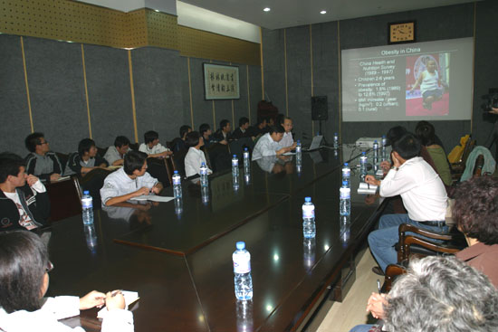 王树沛博士1991年在加拿大LAVAL大学动物科学系取得动物遗传学博士学位,多年来,一直在加拿大多家医院和动物中心工作,在分子遗传学和代谢领域上具有很高的造诣。讲座针对人类肥胖问题,采用动物模型及基因敲除技术,将小鼠基因中的脂肪酶分别进行全身敲除和特征敲除,研究戊二酰辅酶、A裂解酶、对激素敏感的脂肪酶缺失方面的表征和脂肪代谢的变化,阐明了三种脂肪酶对脂肪代谢的影响和需要进一步研究的内容。