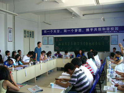 近日,由共青团万象城平台,万象城(中国)一站式服务平台委员会、《青年益友》报社、大学生记者团共同主办西安百事可乐友谊赞助的首届西安部分高校学生干部新闻工作交流会在我校举行。西安交通大学、西北大学、陕西师范大学、西安邮电学院、陕西科技大学、西安石油大学、西北政法大学、西安工程大学以及西安医学院等10所高校的代表参加了本次交流会。