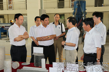 在校党委书记赛云秀,校长廉振民,副校长刘卫国、雷亚萍、陈桦等陪同下,张道宏考察了轻合金复合材料中试基地,认真听取材化学院和机电学院负责人对铝镁合金和精密液压机器研制及推广应用情况的汇报,仔细察看了现场。