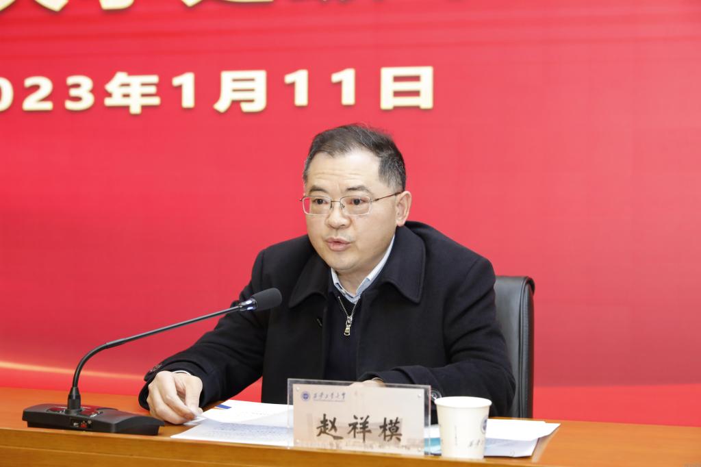 赵祥模对学校2023年及下一阶段的工作进行了总体部署。他指出,学校在全面总结发展成绩、深入分析形势问题的基础上,决定将2023年确定为“学院活力提升年”,全校上下要一体联动,领导班子要沉下去、职能部门要冲在前、学院自身要担起责,全面助力学院活力提升见到实效。同时,他指出,下一阶段工作重点要围绕学习宣传贯彻党的二十大精神、落实好学校第三次党代会确定的目标和“十四五”规划各项任务来扎实开展,并从党建工作、学科建设工作、人才培养工作、科学研究工作、师资队伍建设工作、国际合作交流工作、资源开发与社会服务工作、条件保障及校园建设工作等方面做了重点强调。