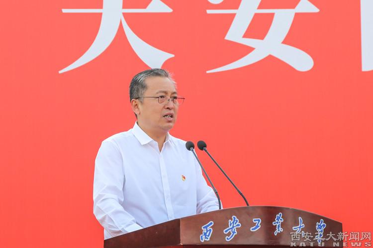 党委书记侯成义在讲话中表示,七十载风雨兼程,一代代西安工大人在五星红旗的照耀下,传承发扬“把一切献给党”的人民兵工精神,扎根西部、献身国防,用忠诚和担当书写了“国之所需,吾之所向”的壮美篇章。他向同学们提出三点希望:一是立鸿鹄之志,铸忠诚品格。要始终胸怀“国之大者”,把个人理想主动融入国家发展伟业。二是砺实干之刃,担时代之责。要践行“敦德励学,知行相长”校训精神,在夯实基础上持续发力,在实践淬炼中砥砺成长。三是攀科技之峰,强创新之翼。要牢记“科技自立自强”的时代嘱托,秉承“忠诚进取,精工博艺”的校风传统,敢闯科研“无人区”,勇攀技术“制高点”。