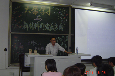 5月15日晚,在B408教室,我校材料与化工学院资深教授严文老师作了题为《大学学习与新材料的研究方向》的报告