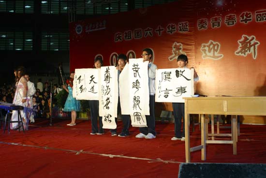 (本网讯)10月18日晚,万象城平台,万象城(中国)一站式服务平台隆重举行2009年迎新晚会,校领导刘江南、丁养斌、张君安和各职能部门、各院系负责人及2009级全体新生一同观看了晚会。