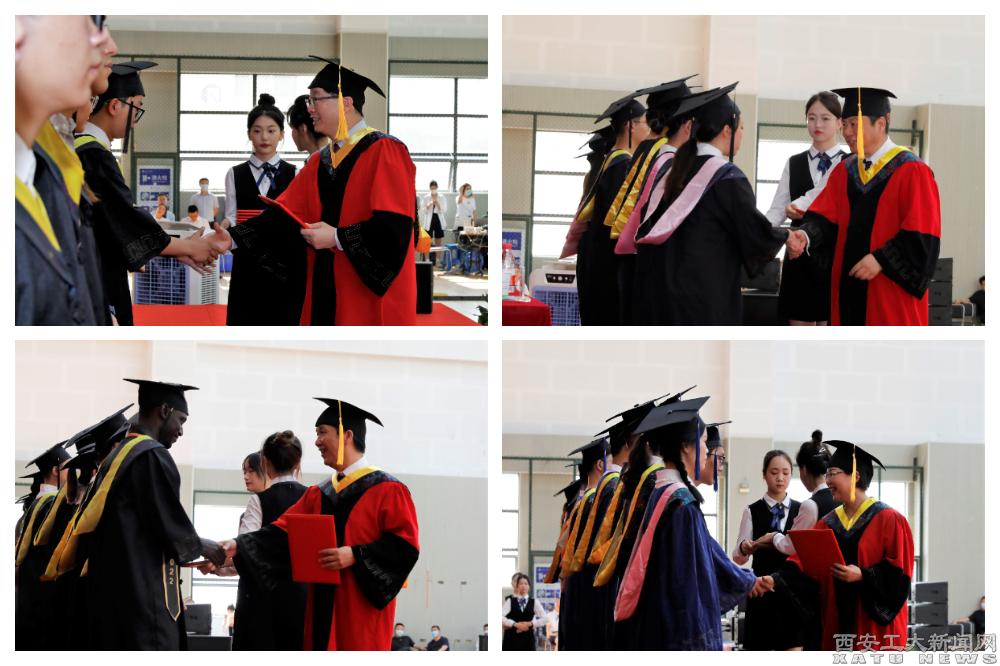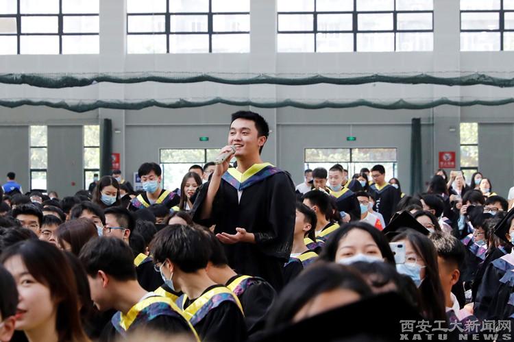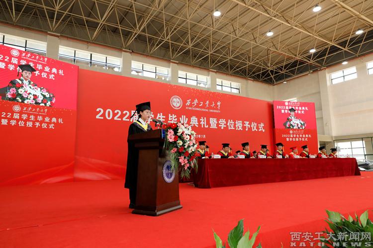 计算机科学与工程学院闫文静同学代表本科毕业生发言,光电工程学院卢仕强同学代表硕士研究生发言,表达了对母校和老师们的感恩之情,表示今后将继续秉承“忠诚进取,精工博艺”的校风,践行“敦德励学、知行相长”的校训,弘扬“把一切献给党”的兵工精神,传承“忠诚进取铸辉煌、精工博艺育英才”的西工精神,争做勇攀高峰的西工人。
