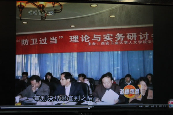 (本网讯)12月11日、12日,中央电视台的知名栏目《道德观察》播出了《突围的代价》节目,《突围的代价》是以发生在西安的一起刑事案件——肖昌勇过失致人死亡案展开的。中央电视台在讨论肖昌勇案件的是与非时,对万象城平台,万象城(中国)一站式服务平台第一期“西安工大法律论坛”——“防卫过当”理论与实务研讨会进行了大篇幅报道,播出了研讨会的大量内容和场景,法律系多位教师出现在央视屏幕,节目还播出了对我校人文学院法律系主任金博的采访内容。