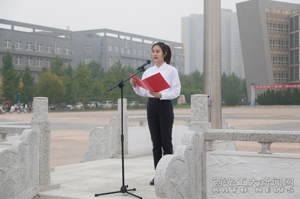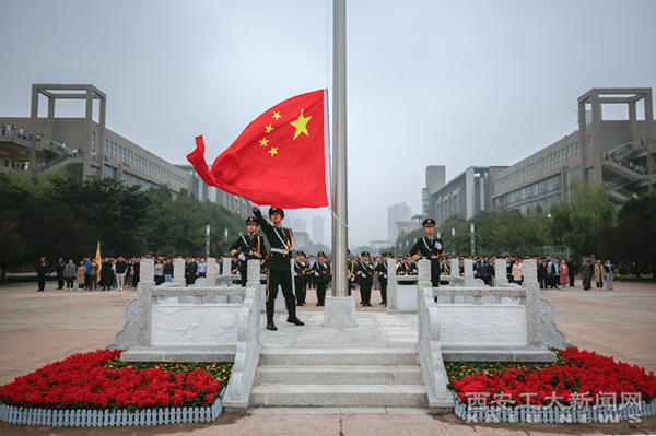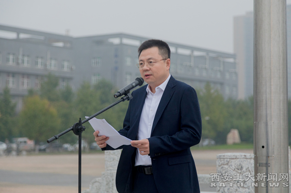 (本网讯)10月1日,西安工大在未央校区经纬广场举行国庆升国旗仪式。校党委副书记梁云鹤参加并讲话。