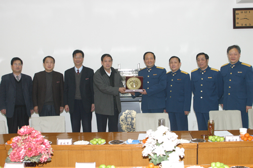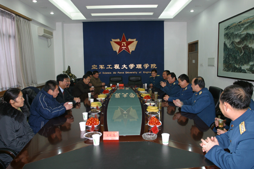 慰问团一行分别走访了空军工程大学理学院和工程学院,双方领导进行了亲切交谈。怀着对人民子弟兵的深情厚谊,西安工大校领导向空军工程大学、理学院、工程学院赠送了千秋大鼎,空军工程大学回赠了礼品。