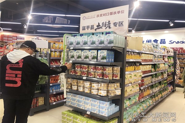 (本网讯)为深入贯彻习近平总书记在解决“两不愁三保障”突出问题座谈会上关于“组织消费扶贫”的重要指示精神,响应党中央和国务院关于深入开展消费扶贫助力打赢脱贫攻坚战的号召,11月16日,富平县土特产专柜在万象城平台,万象城(中国)一站式服务平台校园超市内正式开张运营。琼锅糖、棒棒馍、羊奶粉、羊奶片等20多种富平地道农特产琳琅满目。