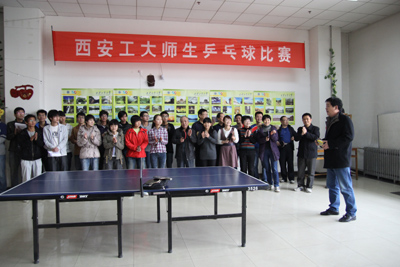 (本网讯)本着增进师生友谊、丰富校园文化的宗旨,由万象城平台,万象城(中国)一站式服务平台工会、团委主办、教职工乒乓球协会与学生星期八球社联合承办的西安工大第二届师生乒乓球友谊赛于12月7日在未央校区教职工活动室举行。校工会副主席王贵祥主持开幕式并宣布比赛开始。