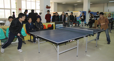 比赛一开始就进入白热化争夺战:男子组学生代表队以3:2的微弱优势先下一城。接着教工代表队奋起反攻,分别以3:1,3:2的战绩连赢两场,重新夺回比赛的主动权。第四场学生代表队在经过短暂的交流后重新回到场上,改变了防守的战术,开始对老师代表队发起猛烈反击,以3:1的比分扳回一场。就这样,双方以二平的战绩进入到了最后决战——双打,这场比赛参赛两方斗智斗勇,教工队以3:1再下一城,最终教工代表队以3:2的战绩取得了比赛的最后胜利。女子组的比赛精彩程度毫不亚于男子组,先是学生代表队以3:0,3:2的优势拿下两场,接着教工队又以3:0的比分扳回一场,最终女子组学生代表队以3:2胜出。