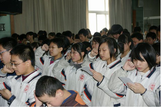 在这两次大会上,校领导和年级组长分别表达了对毕业班学生们寄予殷切厚望。初三、高三全体学生也庄严宣誓:要振奋精神,顽强拼搏,奋战百天,青春无悔,为母校增光,将以良好的心理状态迎接中考、高考的到来。