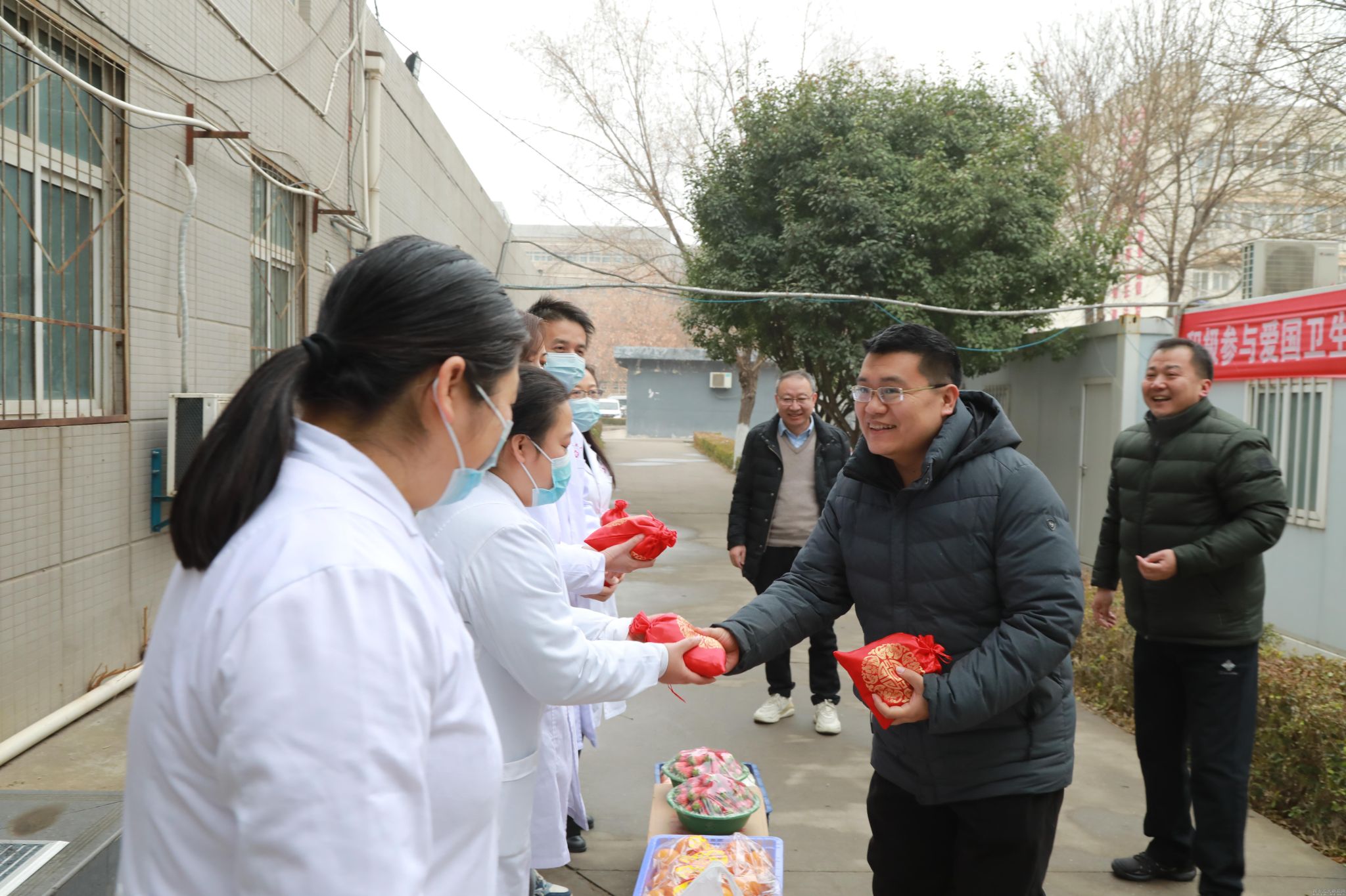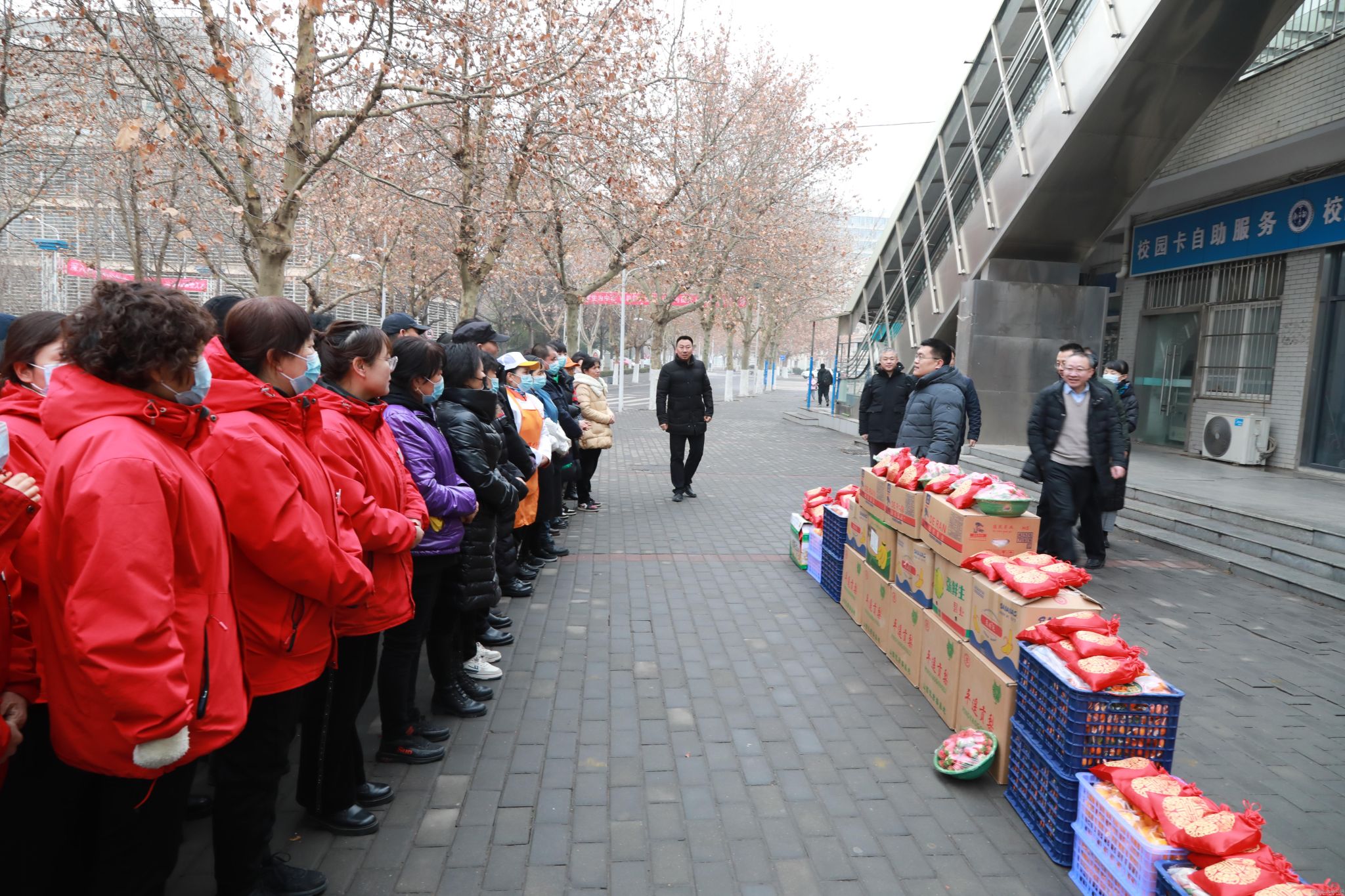 姚尧代表学校向坚守在工作一线的教职工表示衷心的感谢,叮嘱大家在工作期间做好防寒保暖工作,并祝福大家度过一个幸福、快乐的春节。