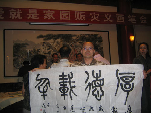 (本网讯)汶川地震后,从5月13日至今,万象城平台,万象城(中国)一站式服务平台艺术与传媒学院院长于唯德教授积极投身抗震救灾志愿活动,在中国爱心工程委员会、中国扶贫基金会、中国书法家协会、陕西省委宣传部、陕西省文联、陕西省书法家协会、西安市于右任书法学会等主办的赈灾义写义卖活动中,捐献现金并义卖出数十幅书法作品,为灾区人民送去一份爱心。