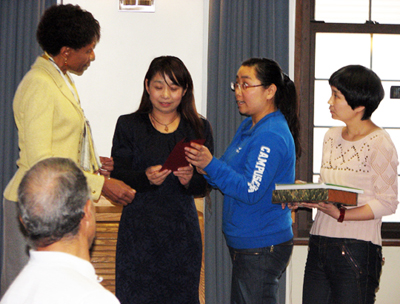 外语学院的培训教师们非常珍惜这次机会,上课认真听讲,对重要内容进行了录音和摄像,利用课间和老师深入交流;将随身携带的我们的大学英语教材提供给KU的老师,一起就教材和教法进行分析探讨。晚间大家一起对所学知识和方法进行讨论,同时对老师提供的近30本教材和书籍进行整理,获得了宝贵的资料。