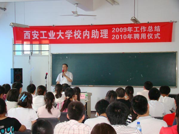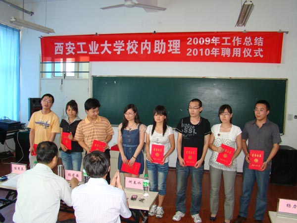 仪式上,学生处副处长姬洪波对2009年的校内助理工作进行了总结,对2010年的聘用情况进行了说明。学生处处长任慧英宣读了2009年校内助理岗位年度考核结果,参会领导为全体考核优秀和合格的校内助理发放了荣誉证书。