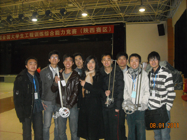 为了参加本次竞赛,在教务处的大力支持下,工业中心主任马保吉教授亲自出任总教练,教练组由宁生科、王党利、祁立军、王小翠、李蔚、郭宝亿等组成。在比赛时间紧迫的情况下,竞赛组委会组织制造工程师实验班的学生通过报名、提交设计方案、专家组方案论证等几个环节,最终确定了三支参赛学生代表队。参赛代表队成员从2010年10月底开始,在工业中心教师们的悉心指导下,经过两个多月的辛苦努力,几经设计、加工、安装、调试等各个环节,最终在陕西赛区的竞赛中取得了优异成绩。