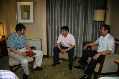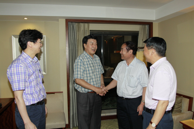 (本网讯)6月23日晚,陕西省学位委办主任孙朝、副主任杨俊利及西安工大校长廉振民教授、副校长刘卫国教授等前往宾馆看望博士学位授予单位立项建设中期检查专家组成员。