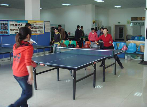 两天的比赛进行的如火如荼,教师队经验丰富,球技高超;学生队也不甘示弱,力争上游。在球场捉对厮杀过程中,每个参赛选手丝毫不敢松懈,教师选手沉着稳定、稳扎稳打,学生选手激情四射、奋力拼搏,选手们变幻莫测的发球,精彩的对攻以及一板板令对手难以招架的扣杀,不时引来观众的阵阵掌声。最终学生男子团队以3:2的战绩险胜教师团队,而教师女子团队以4:1的成绩战胜学生女子团队。比赛结束后,教师和学生参赛代表之间还进行了一场表演赛,同时师生还围绕如何增进球技、球艺进行了经验交流。