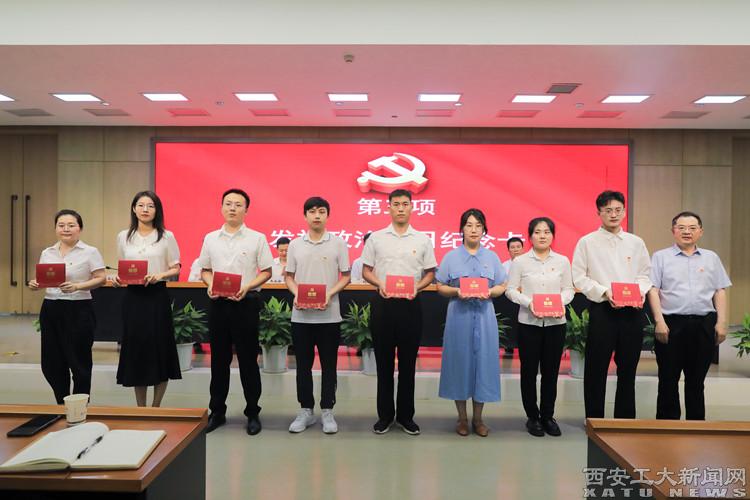 大会在庄严的国歌声中拉开帷幕,校党委书记刘卫国首先为党龄满50年的3名老党员代表颁发了“光荣在党50年”纪念章,校党委副书记、校长赵祥模为8名师生党员发放了政治生日纪念卡。
