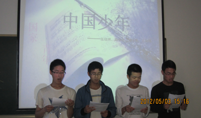 伴随主持人魏超鹏铿锵有力的开场白,将同学们引入了浓厚的历史氛围中。朗诵赛以一则动人的五四故事拉开序幕,朗诵者一首激情昂扬的《沁园春·雪》将比赛引入佳境。紧随其后,伴随着高亢情感的《我热爱这块土地》更是将比赛推向高潮!《中国少年》和《致钱学森》参赛作品内容尤为突显,淋漓尽致的表达了当代青少年的满腔热血和爱国之情。十四组队员用诗歌歌颂了祖国、抒发了大家的爱国情怀。