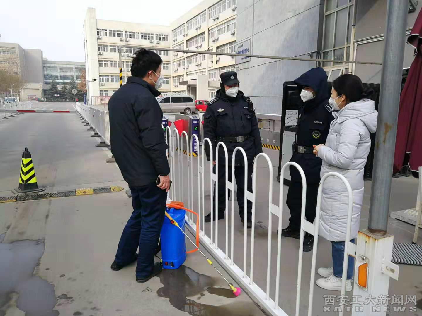2月8日上午,校医院分2组对两校区工作防控进行技术指导,未央校区由贾应应院长带队,金花校区由王丽副院长带队,对未央校区东门、西工新苑北门、南门,金花校区东家属院等门卫值班情况、出入人员登记情况及消杀情况进行业务督导。根据西安市新冠肺炎疫情防控办公室的有关精神,对消毒液的配置比例、喷洒进行业务指导。
