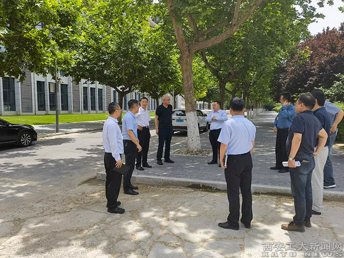(本网讯)6月8日,省发改委二级调研员强伟、省教育厅二级调研员田保卫一行莅临我校检查指导高质量项目暨“教育强国”推进工程项目进展情况,校长赵祥模、副校长刘卜出席座谈。