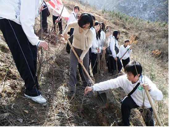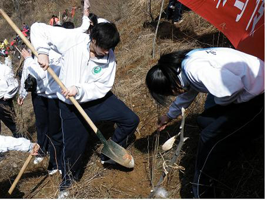 早晨9时,在太平峪森林公园的山坡上,同学们与千名前来参与植树的市民一起挥锹培土,提水浇灌,一棵棵紫荆树幼苗在大家精心的栽植下挺立起来。植树现场,到处是一派热火朝天的劳动场面,仅一上午,就新种下了上千株树苗,为西安又增添了一道绿色风景线。
