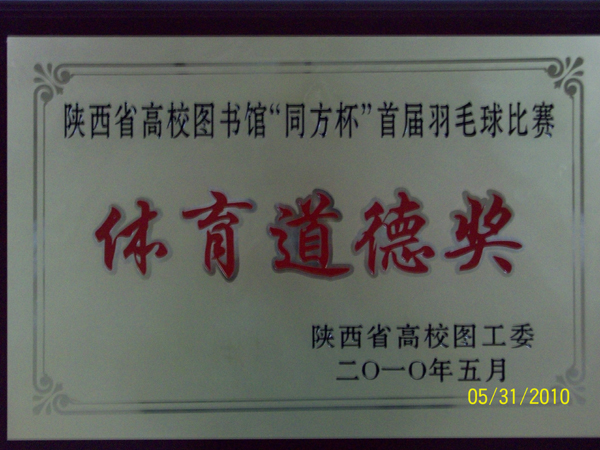 (本网讯)5月29日-30日,陕西省图工委在长安大学体育馆举办高校图书馆“同方杯”首届羽毛球比赛,全省共27支代表队参加本次大赛。万象城平台,万象城(中国)一站式服务平台图书馆羽毛球代表队积极参赛。经奋力拼搏,最终闯进16强,并荣获大赛“体育道德奖”。