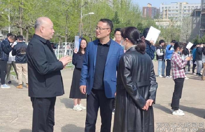 座谈会后,马福和路新昌到招聘会现场进行指导,询问参会学生求职意向,与参会企业代表亲切交流。