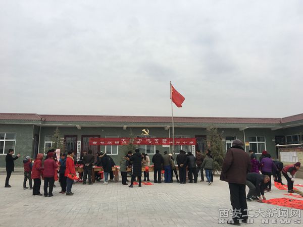 (本网讯) 1月28日,适逢中国农历小年,西安工大中国书法学院师生一行10余人在学院党总支书记王苏喜教授的带领下,走进富平县黄窑村,举行了“春节送福进黄窑 文化帮扶奔小康”活动,师生们以送春联、“福”字的形式向村民们送上新春的祝福。