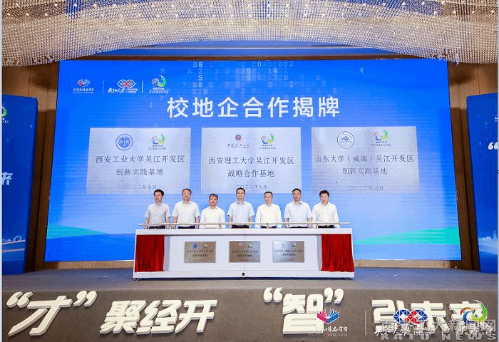 (本网讯)7月11日,2023年吴江开发区高层次人才创新创业洽谈会暨全球高校数字素养赋能项目发布会隆重召开,区委常委、吴江开发区党工委副书记、管委会副主任李文斌出席活动并致辞,我校党委副书记马福、党委研究生工作部副部长孟静等参加了此次发布会。