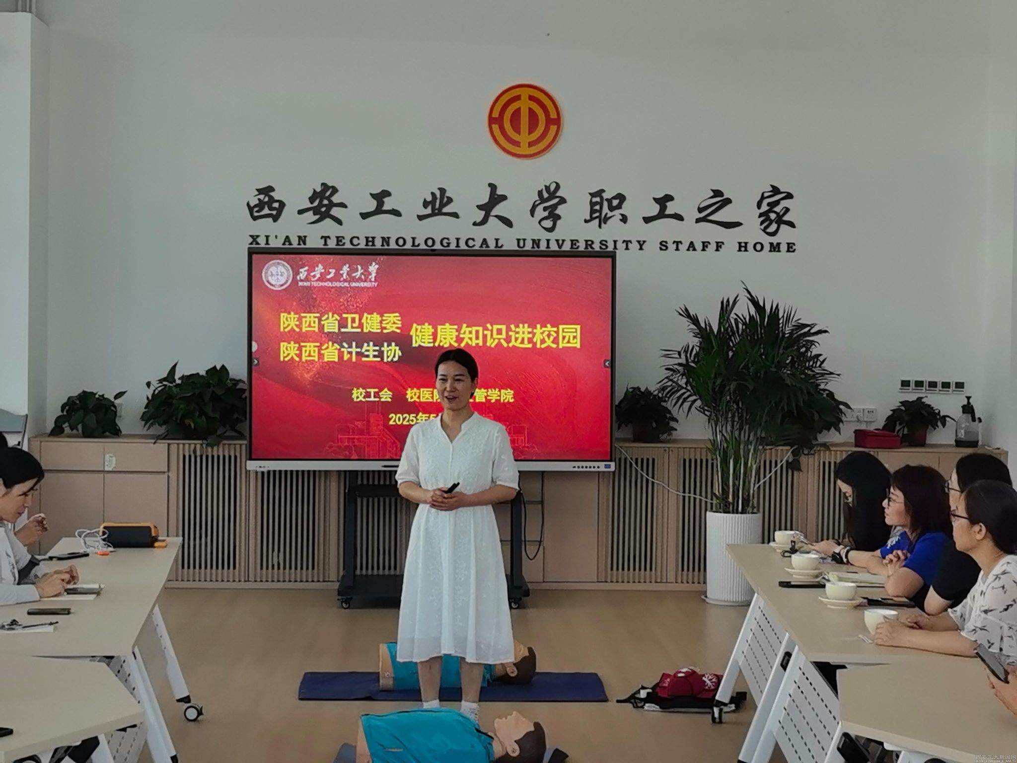 (本网讯)为进一步增强教职工的安全意识,普及急救知识与技能,提高应对突发事件的自救互救能力,营造安全校园环境。5月28日,校工会、校医院、经济管理学院工会联合陕西省卫健委、陕西省计生协、陕西省红十字会,在大学生活动中心职工之家举办了教职工急救知识专题讲座。