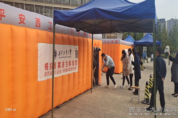 应急演练分两部分,第一部分是理论宣讲,由保卫处老师向全体辅导员讲解灭火器正确使用方法和模拟烟雾逃生体验馆的结构和流程。第二部分是实践环节,全体辅导员依次持灭火器进入模拟灭火体验馆,对火点进行灭火演练,并模拟火灾发生后如何从布满烟雾的楼体中逃生。