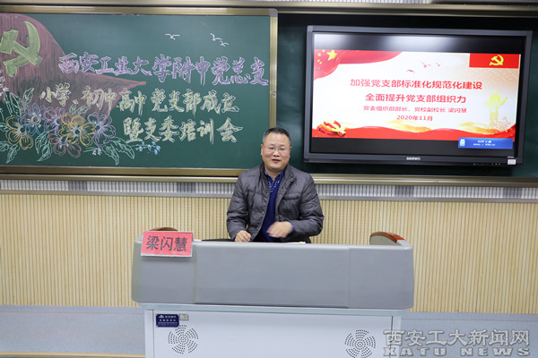 梁闪慧从党中央对加强党支部建设提出的具体要求及背景出发,简要介绍了标准化规范化以及组织力的基本定义,主要从党支部标准化规范化建设的总体要求、基本原则、目标任务、组织保障等四个方面作了全面讲解。他结合《中国共产党支部工作条例(试行)》《中国共产党党员教育管理工作条例》有关规定,上级及学校有关文件精神,重点就党支部基本组织设置、基本队伍建设、基本制度落实、基本活动开展、基本保障配套标准化规范化等五个目标任务进行了讲解,整场培训会讲解细致,培训内容贴近工作实际,对附中党总支及各支部开展工作具有很强的指导性。