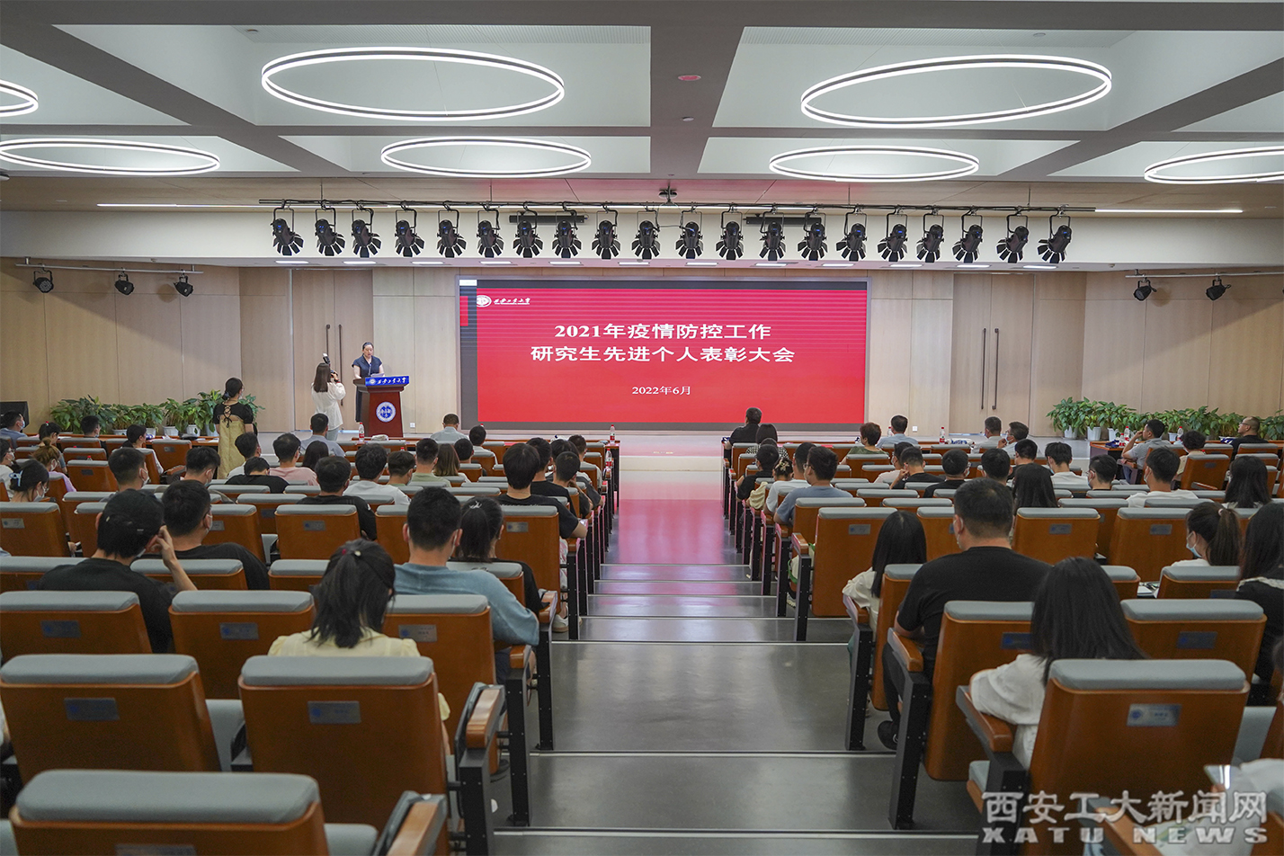 会上,大家观看了研究生疫情防控服务队工作视频,回顾了研究生闻令而动、冲锋在前、追光逆行的感人瞬间,宣扬了研究生勇于担当、善于作为、无私奉献的高尚品质;苏兵宣读了《关于表彰2021年度疫情防控工作研究生先进个人的决定》;在场有关领导分别为“突出贡献者”“先进工作者”“倾情奉献者”“最美逆行者”颁发了荣誉证书。