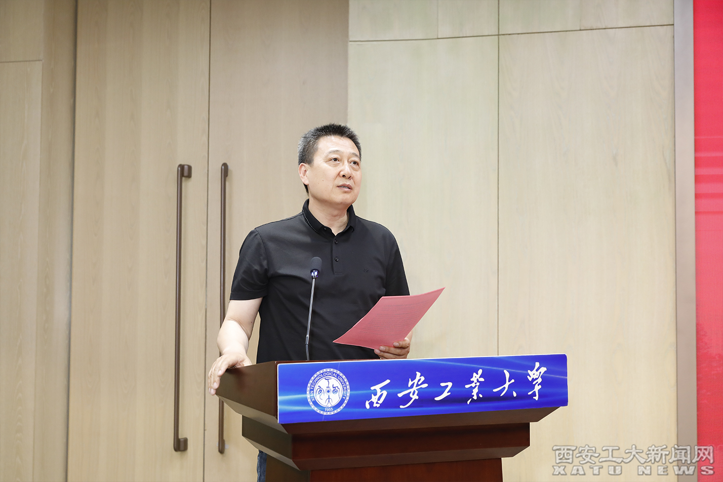 机电学院研究生代表葛星辰发言,他讲述了抗疫期间,义务服务者们向战而行、倾情奉献的战“疫”精神和团结坚强、服务师生的感人事迹。他代表研究生疫情防控服务队队员们表态,将坚守服务初心,牢记使命担当,真诚服务师生,继续以实际行动守护好西安工大校园的平安美好。