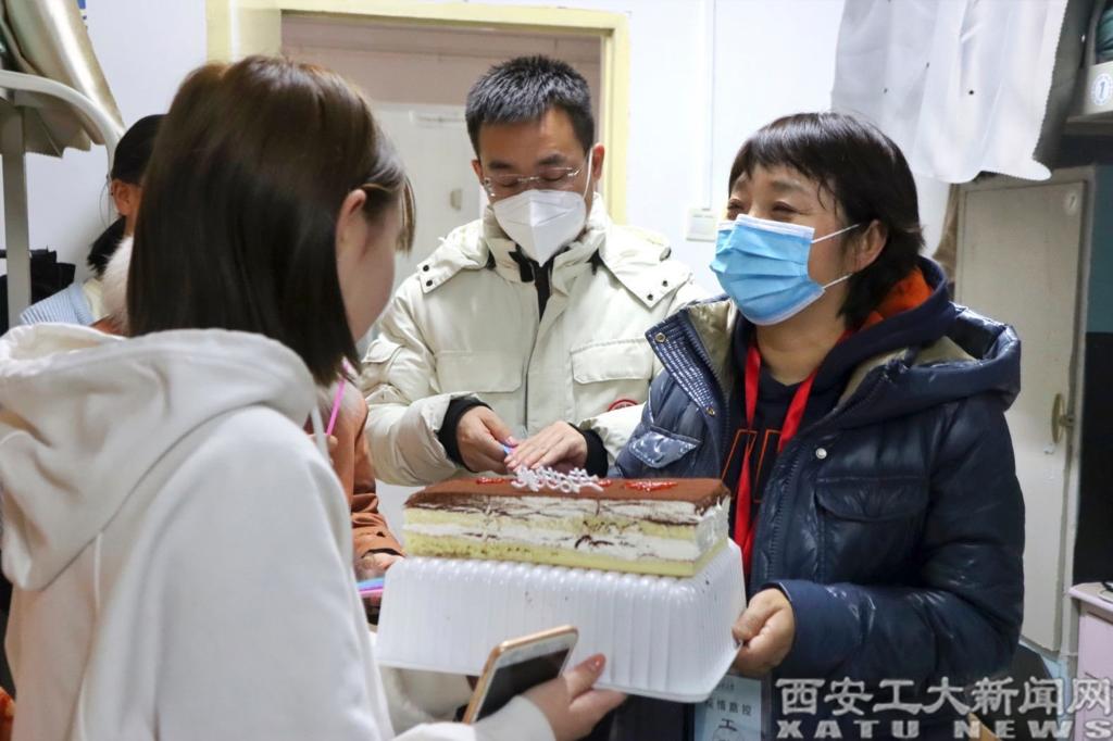 老师同学们一起为小“寿星”点亮生日蜡烛、唱生日快乐歌,刘改琳叮嘱同学们:“舍友之间应该相互关爱,相互帮助,尊重和包容彼此的生活习惯,舍友之间有了矛盾要及时沟通交流,化解矛盾,共同营造一个和谐快乐的宿舍氛围,维护好宿舍这个小家庭和新生院这个大家庭!”同时她还希望同学们能勇担责任、立鸿鹄志,为自己创造美好的未来。姬洪波详细询问了同学们在宿舍封闭期间的学习和生活情况,希望大家早睡早起、规律作息,养成良好习惯,不要因为疫情荒废学业。