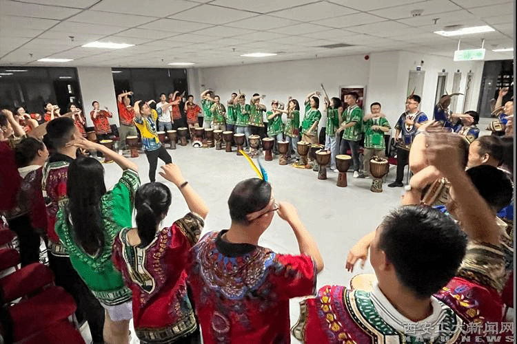 拓展活动以小组为单位,分为四个小组。为激发参与热情,加强彼此默契和信任,教练首先组织同学们进行熟悉组员、选出队长,设计小组队名、队歌、队旗、队形和口号等一系列破冰活动。随后,主要拓展活动通过“非洲鼓”“挑战150S”“大富翁”“鼓动人心”“纳斯卡巨画”五个项目展开。活动中,同学们表现出了高涨的热情、良好的协作精神以及旺盛的创造力。