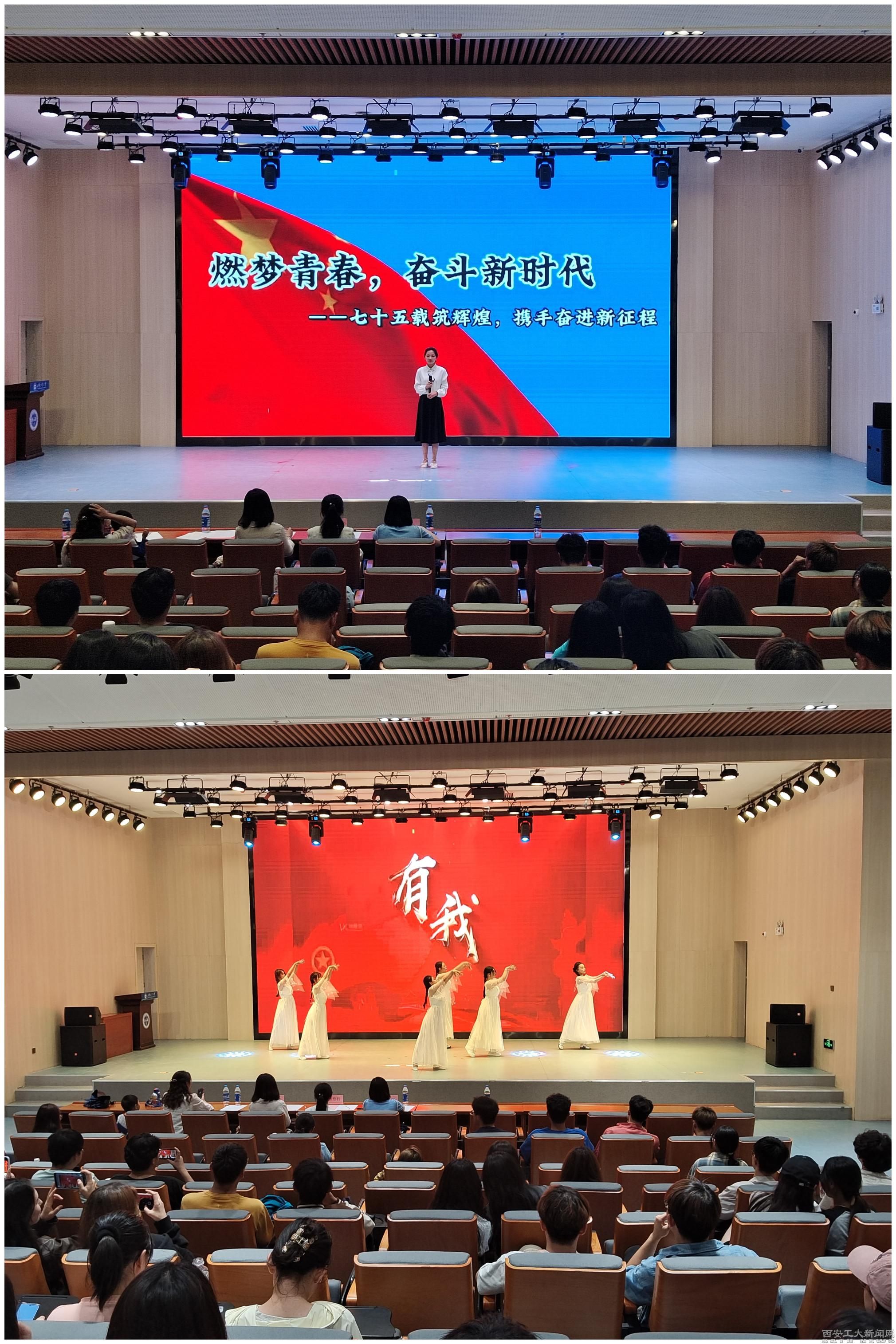 决赛在舞蹈《有我》中拉开帷幕,舞者们将日月星辰藏于翻飞的衣袖,舞出巍巍大国,织出锦绣江山。接着聂小栋、蒋子龙、武睿琦、冯佳伟、武晓倩、姚乐颜、李洺皓和郑佳欣八位同学满怀深情的诵读演讲了《星星之火可以燎原》《闻一多诗集》《燃梦青春,奋斗新时代》《我的祖国》《月光下的中国》《红烛》《诗意中国》和《回延安》等经典篇章,他们用声音诠释着对党和祖国的热爱,对经典的敬仰,以及对中国式现代化建设取得的辉煌成就的赞颂。