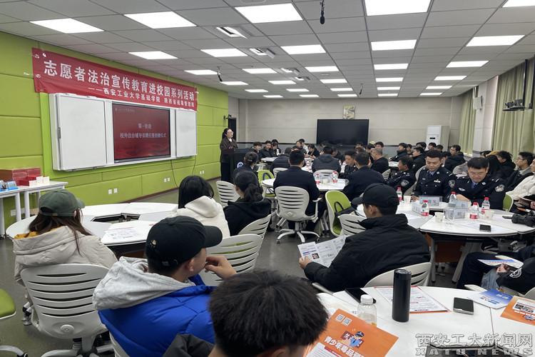 (本网讯)为进一步加强校园法治建设,提升大学生法治素养,12月5日,基础学院与陕西省戒毒管理局联合举行校外法治辅导员聘任仪式暨志愿者法治宣传教育进校园系列活动。本次活动以“大力弘扬宪法精神,推动进一步全面深化改革”为主题,积极面向大学生开展宪法宣传系列活动。陕西省戒毒管理局二级高级警长史鹏、大队长党王杰、二级警长李力,陕西省渭南强制隔离戒毒所康复训练中心主任吕前华、教育矫治科副科长张楠、一级警员刘战勇、阮航、任航,陕西省长安强制隔离戒毒所四级警长陈俞戈如约来到我校开展活动。活动由基础学院党委副书记张艳霞主持。
