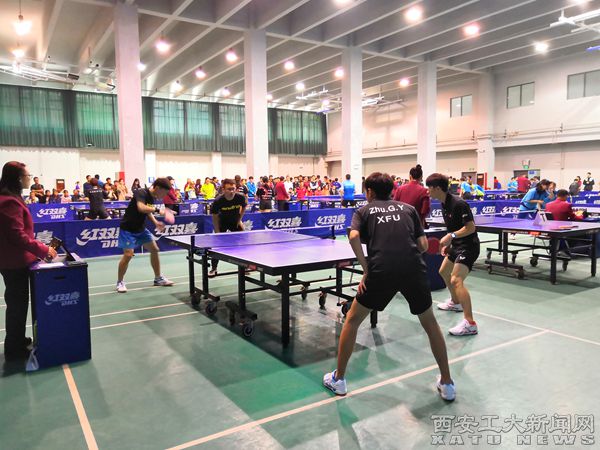 (本网讯)2018年11月6日,由省教育厅主办,省学生体育协会、西安交通大学承办的2018年陕西省大学生乒乓球比赛在西安交通大学拉开帷幕。本次比赛共有全省66所高校的899名运动员参赛,我校来自光电、机电、材化等7个学院的8名运动员在体育学院魏中、刘荃钦老师的带领下参加了比赛。