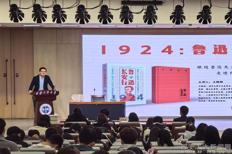 (本网讯)为了在我校营造浓郁的读书氛围,大力推进“书香校园”建设,10月30日,图书馆特邀西北大学博士生导师王鹏程教授在图书馆报告厅举办《1924:鲁迅长安行》新书分享会。图书馆馆长容晓峰为本次活动致辞,300余名师生参与本次真人图书分享活动。